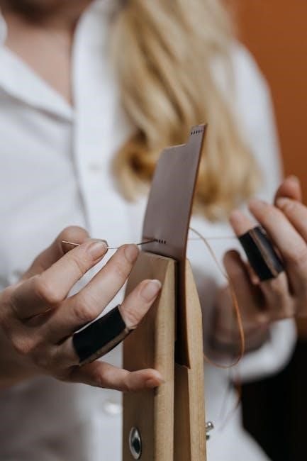 The Singer E99670 features an automatic needle threader, designed to simplify the threading process. To use it, raise the needle to its highest position and pull the threader to the left. Insert the thread through the threader’s guide, then gently release it to allow the machine to thread the needle. This feature saves time and reduces eye strain. Always refer to the manual for visual guidance. Ensure the machine is turned off before threading to avoid accidents. Regularly clean the threader to maintain its efficiency. This convenient tool enhances sewing efficiency, especially for beginners or those with limited dexterity.